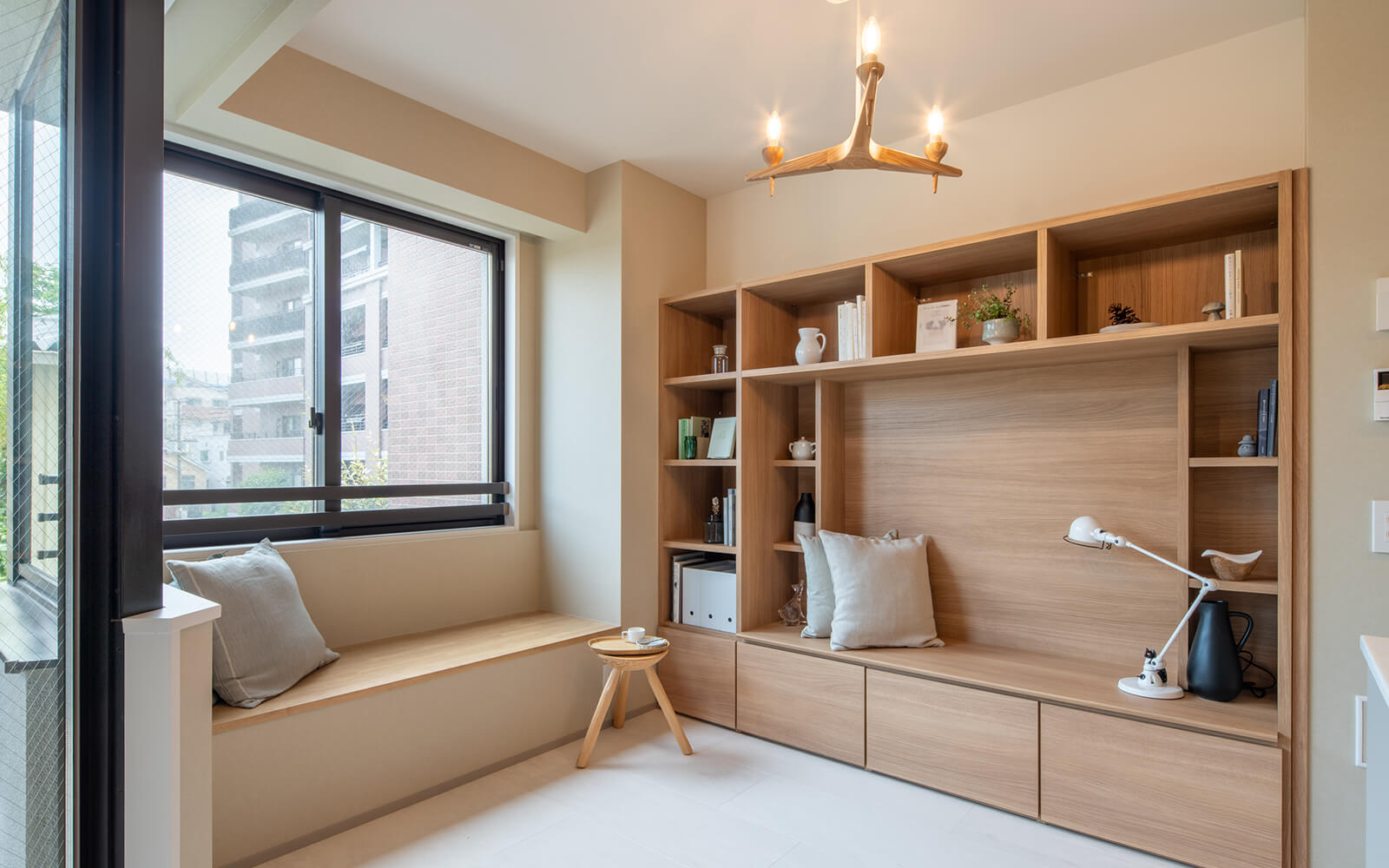 和田: この物件にもいくつかネックポイントがありました。まず、1階にあり景観があまりよくなかった。そこを逆手にとって内部にフォーカスした設計にしようと。もともとの間取りを最大限活かすかたちで、出窓にヌックスペースをつくりました。
