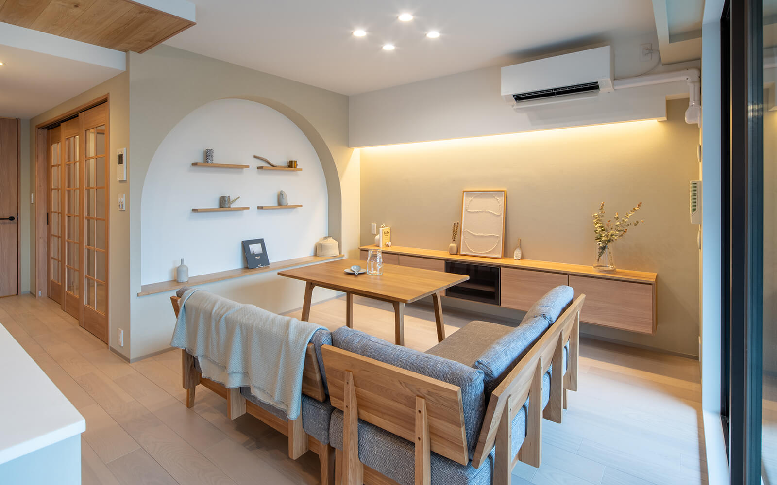 和田: 収納ニッチですね。土間の奥のアーチと合わせてR型にしました。こうした曲線のデザインを取り入れたことも空間に漂うやわらかい心地よさにつながっていると思います。