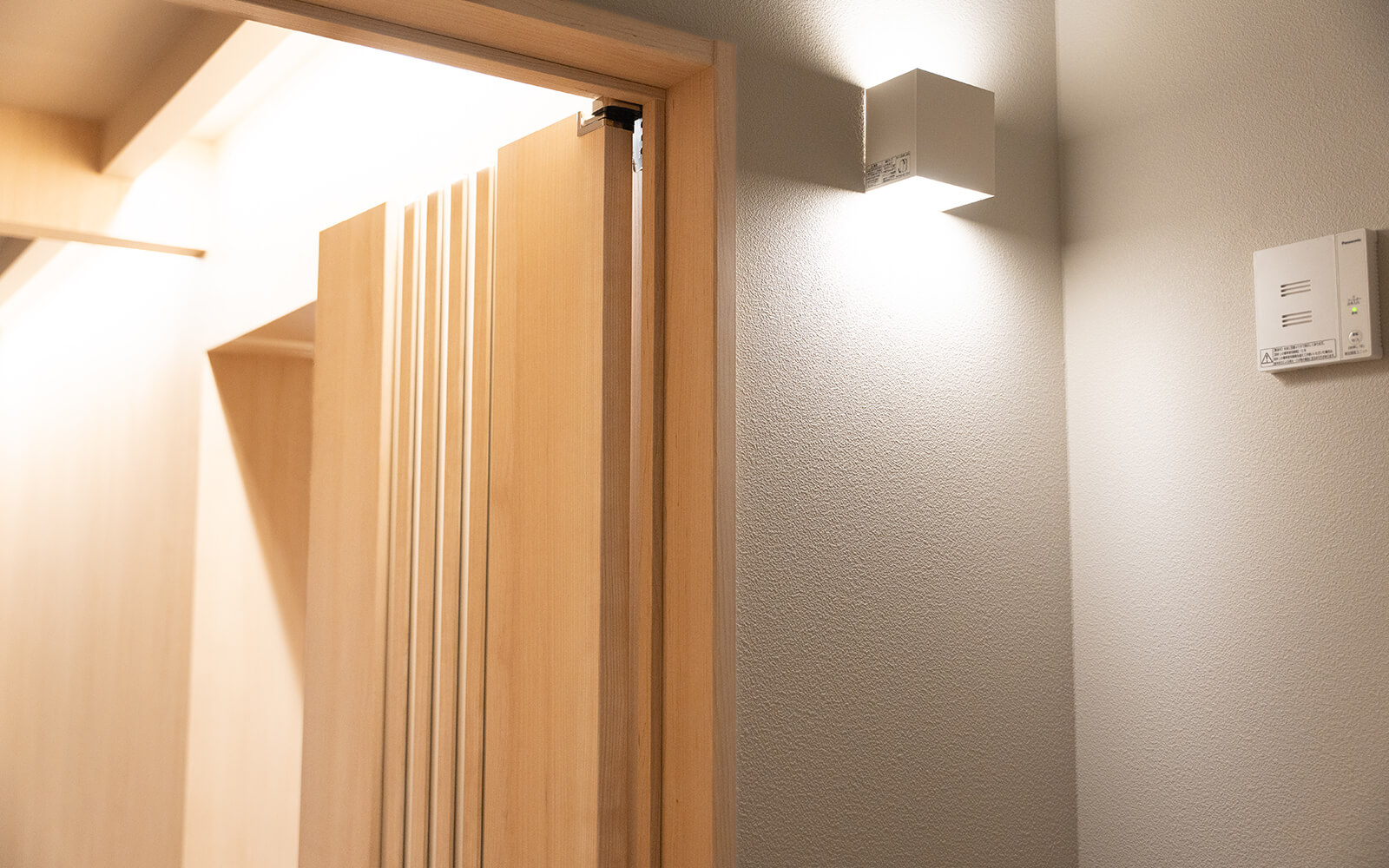 只松: まず入り口にはブラケット照明を取り付け、部屋に入る前からホテルライクな演出を施しました。この先にどんな空間が広がっているのか、思わず見てみたくなりますよね。