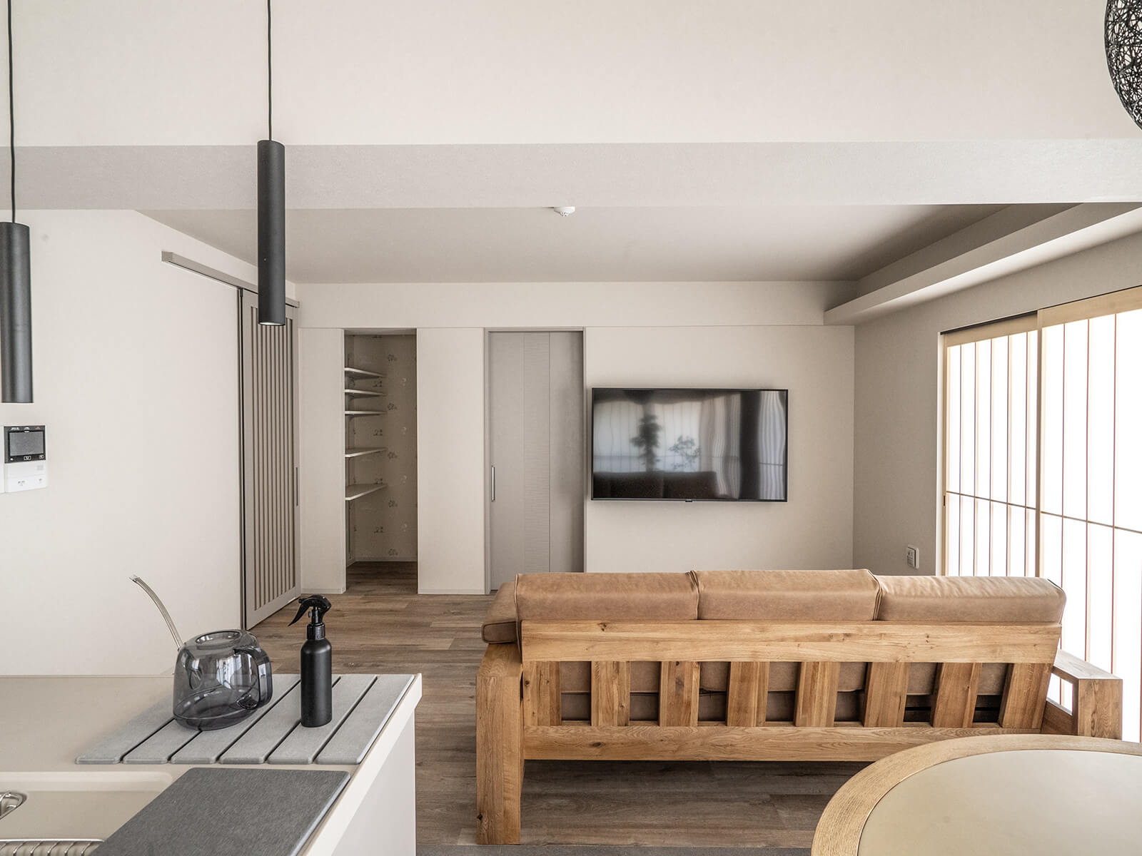 築20年の中古マンションがセミリノベで、和モダン空間へ生まれ変わった。