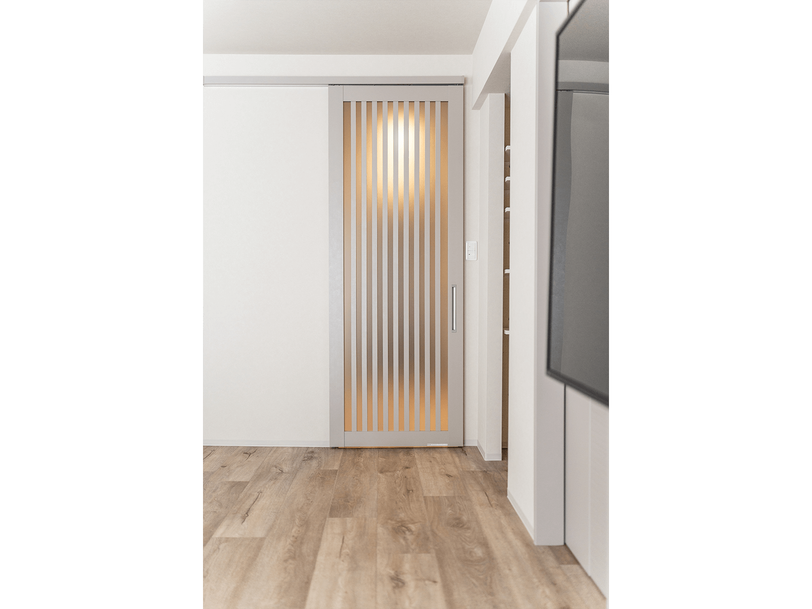 リビングドアを格子のあるVERITIS Standard Lable(ベリティス スタンダードレーベル)HC型にしたことで、和モダンな意匠性がワンランクアップ。寝室のドアはPH型、ほかはシンプルなPA型を選んだ。