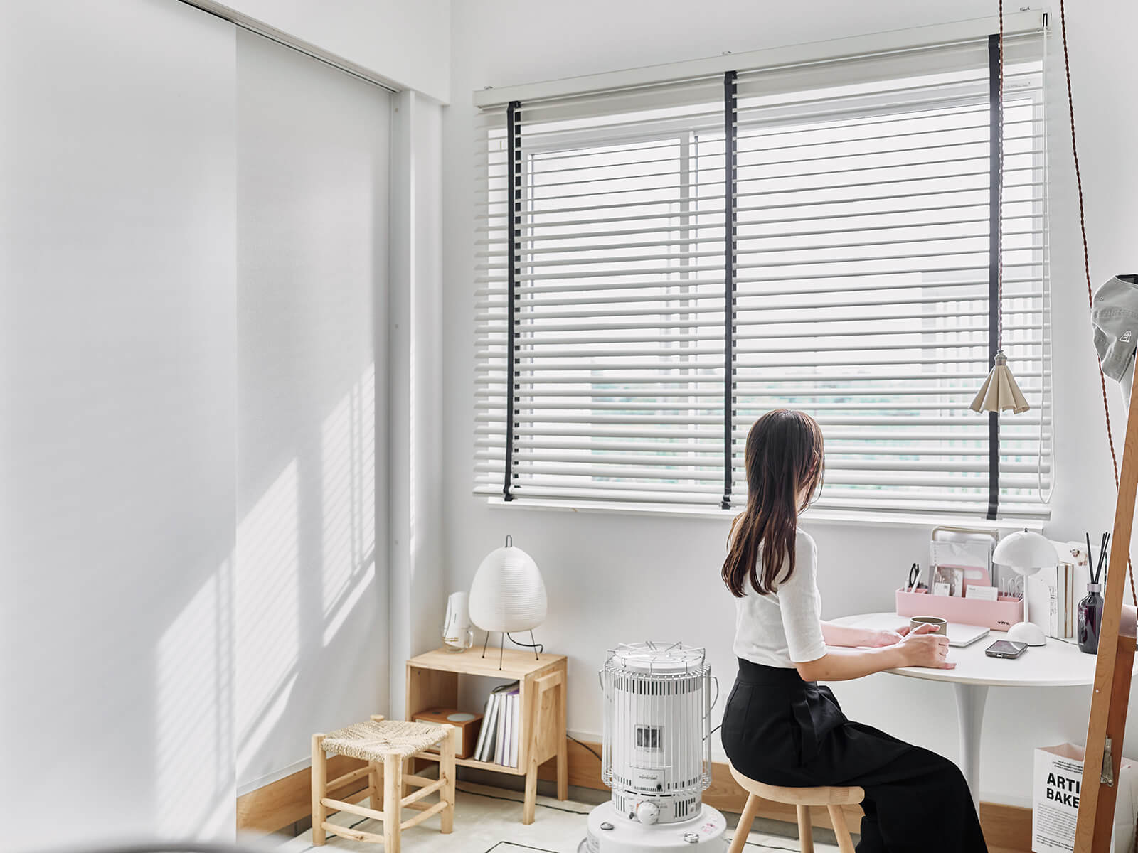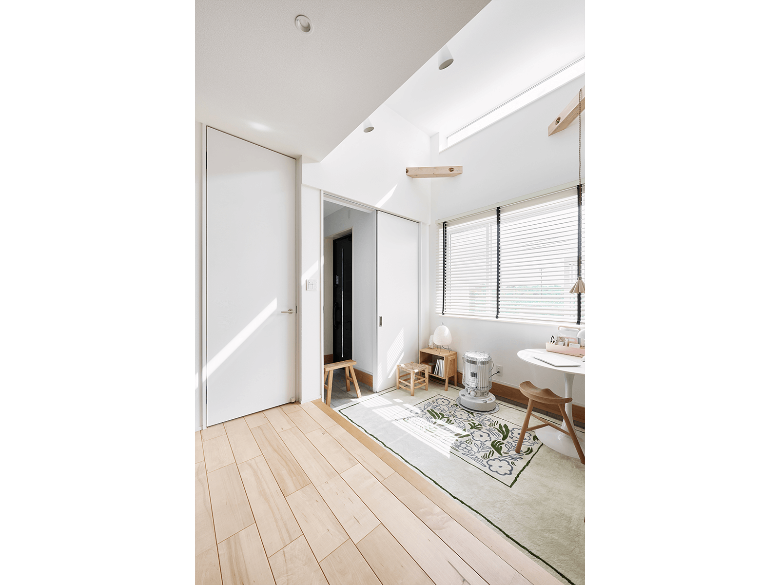 扉を閉めれば小さな部屋になる。ひとりゆっくりお茶を飲んだり、子どもたちがカフェごっこをしたり。子どもたちが遊ぶ姿をキッチンに立って眺めることも楽しみの一つに。冬場もカーペットを敷いて石油ストーブを置けば暖かい。