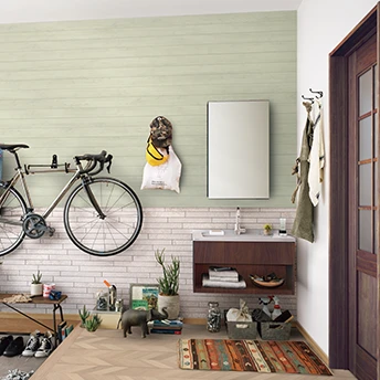 不燃性能に加えおそうじ性能と意匠を兼ね備えた壁仕上げ材です。