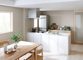 シンクと加熱機器を1列に並べた基本的なかたちです。Ⅰ型プランの一覧を見る