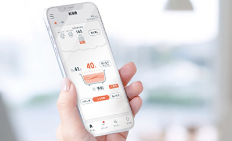 遠隔で給湯を操作できる専用アプリ