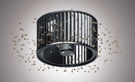 溜まった油を吹き飛ばし、ファンの
