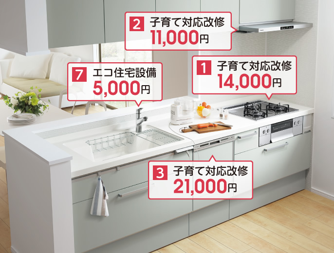 キッチンセットの交換を伴う対面化改修(補助額89,000円)をした場合