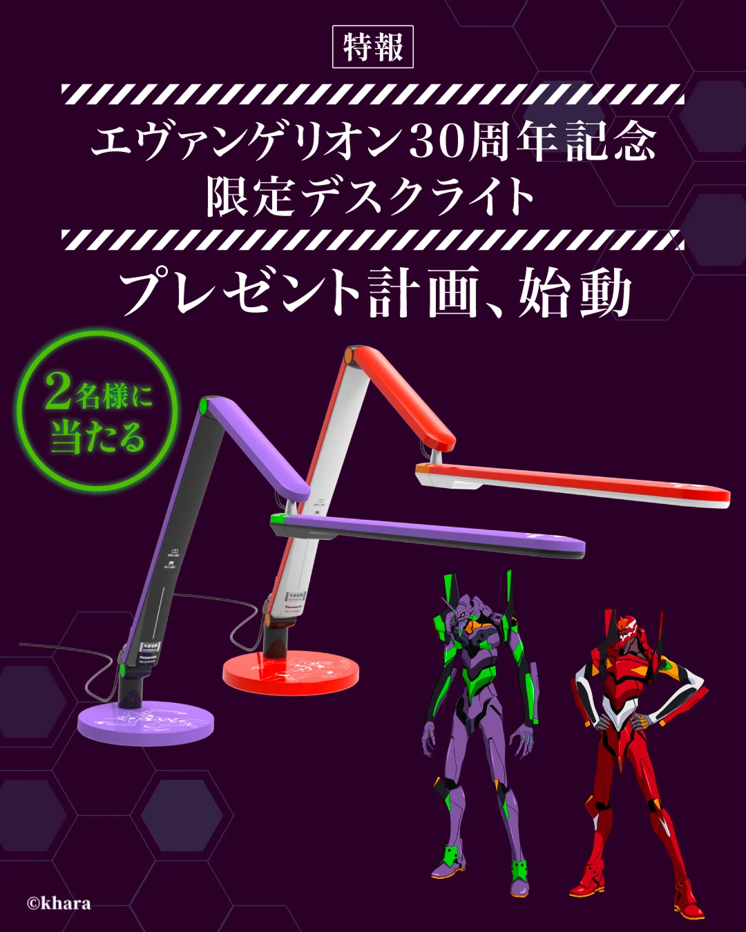 2026年1月28日【エヴァンゲリオン30周年記念限定デスクライトプレゼントキャンペーン】抽選で2名様にエヴァンゲリオン仕様 汎用卓上型照明器具をプレゼント!