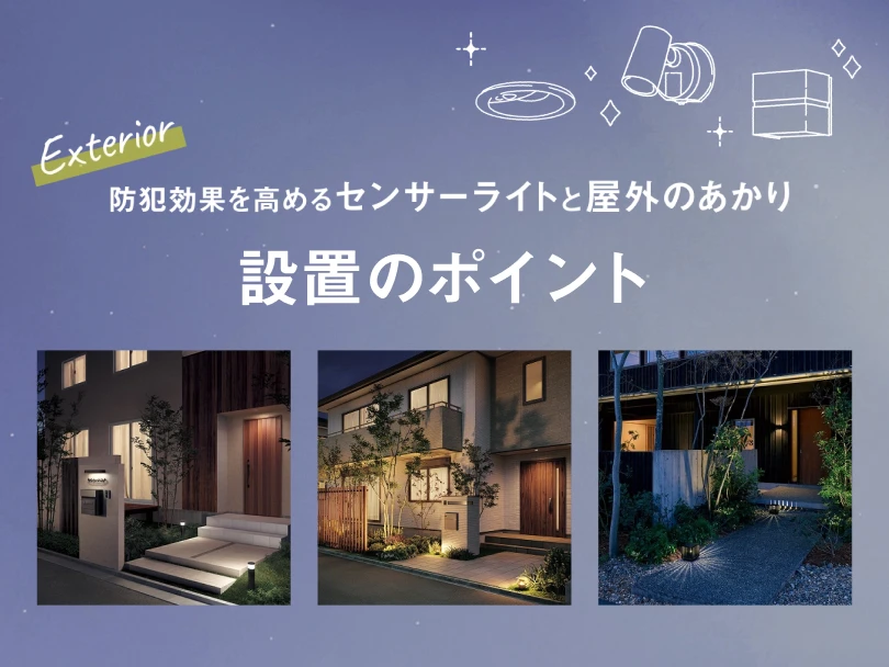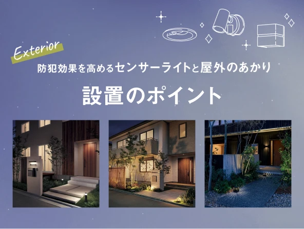 侵入窃盗対策にはセンサーライトが効果的。玄関や門まわりなど設置場所ごとに、防犯性を高める屋外のあかりの活用方法をご紹介します。