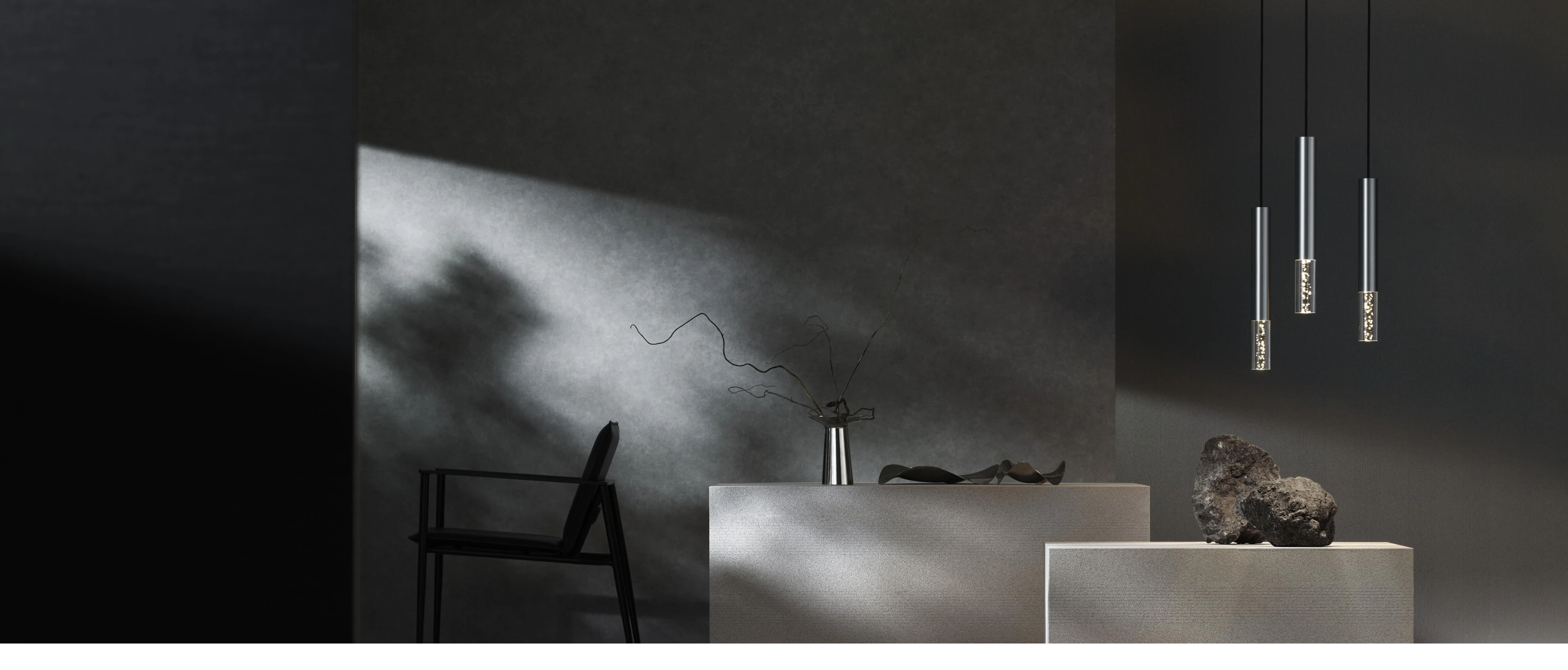さまざまな素材やカタチで仕上げた「ブラック」のあかり。洗練されたクールなオリジナリティ溢れる空間を演出します。