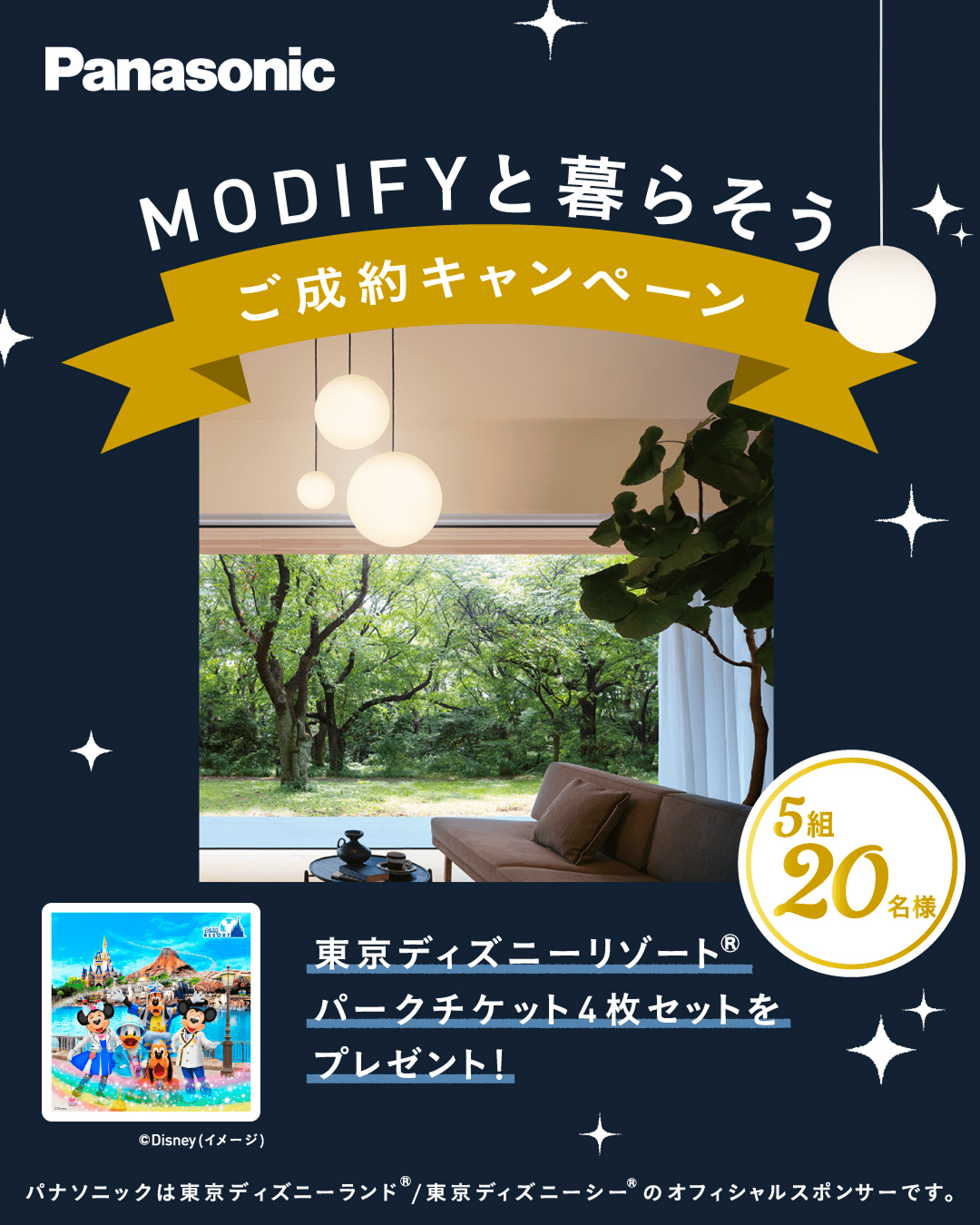 2025年7月22日【MODIFYと暮らそう ご成約キャンペーン】東京ディズニーリゾート® パークチケット4枚セットを5組20名様にプレゼント!