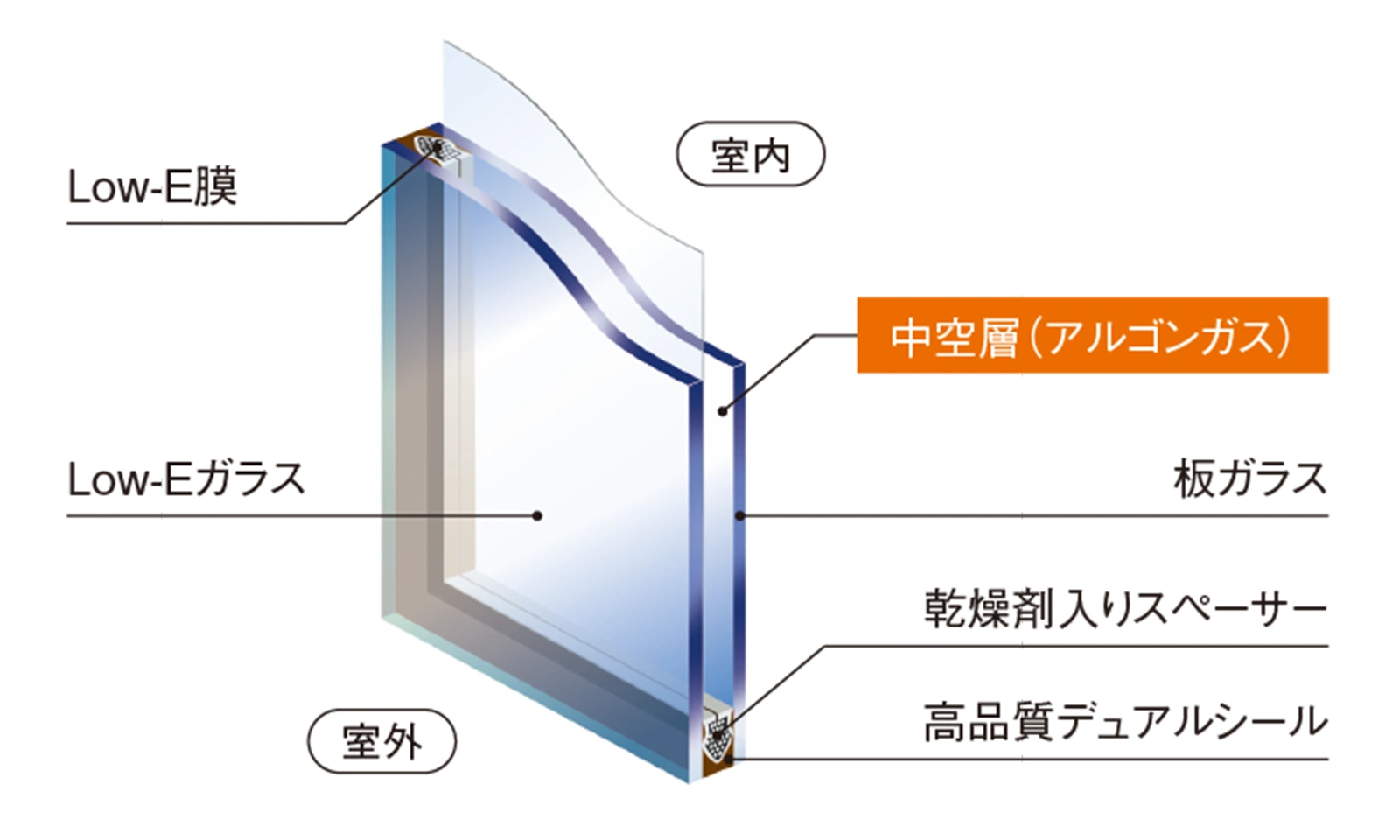 Low-E複層ガラス(アルゴンガス入り)