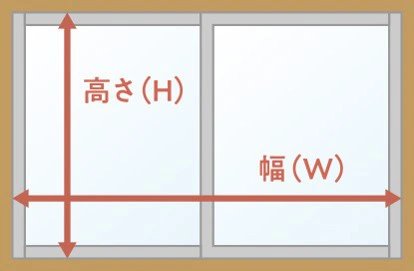 今の窓の内側についている窓枠等の開口部の横幅と高さを測ってご入力ください。(単位:mm)