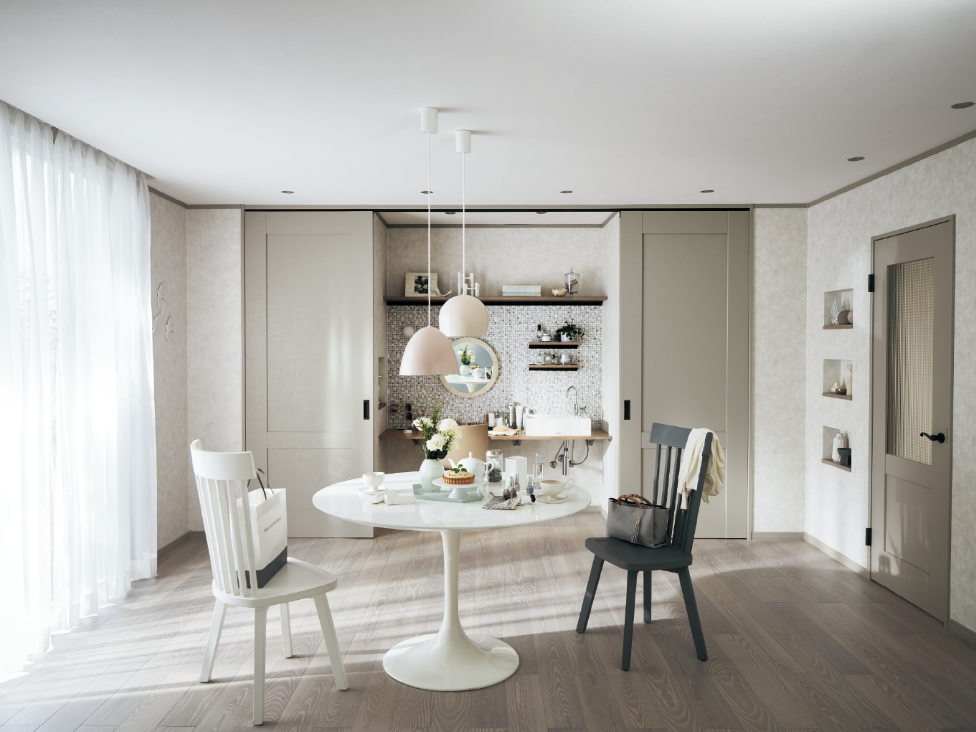 幅広いガラスラインアップと化粧パネルをご用意。ゆるやかに自分だけのスペースをつくれます。