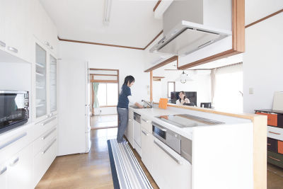 IHクッキングヒーターは料理が吹きこぼれると自動的に停止し、その後のお掃除もさっとふくだけ。お手入れがラクラクで奥様も大助かりだとか。