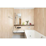 以前の浴室はオフホワイトの無機質な壁面で、“見るだけで寒かった”とおっしゃいます。「リフォムス」ではお好きな木目調の壁を選び、木に囲まれているようで落ち着くそう。