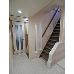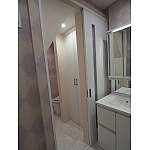 トイレ横の元々の洗面化粧台の位置を収納にし、トイレの入口の扉を移動させ、引戸にし、明るい色に変更。