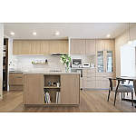 間仕切り壁を撤去して、開放的な空間に。キッチン・カップボード・アイランドカウンターを同じ色柄にしてしっかり収納量を確保することで、スッキリ統一感のあるおしゃれなLDKになりました。