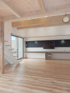 リビングダイニングと和室から、開放的で広々とした、優しい雰囲気のリビングダイニングに変更しました。リビングダイニングの正面の壁には、薄型液晶テレビを設置しました。