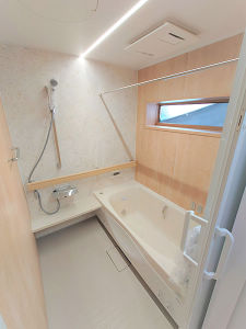 元より広い浴槽になり、見た目や機能面でも温かい空間に。
