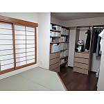 『畳が丘』を設置。たっぷり入る収納には、ご家族の思い出の品、お子様の成長の記録を収納。南西角で、窓を開けると風通しが良く、冬は日が入り暖かく気持ちの良い空間になりました。