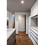 開放的な空間に変わりました。エアコンの位置も移動し、空調効率向上とともに、配線配管を隠蔽するために収納の隣に設置。こうした工夫によって、空間がすっきりと整えられました。