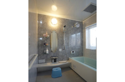 タイルで寒かったお風呂を、あたたかくてゆっくり浸かれるシステムバスに。3枚引き戸にしたので開口が広く、洗面室との段差もないので安心して出入りできます。