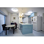 白を基調に、LDKはブルー系、サニタリーはグリーン系で統一。