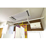 1階の洗面室に設置した、室内物干し「ホシ姫サマ」は、お母様の物干し場。リモコン操作で手元まで竿を下ろして、洗濯機から取り出した洗濯物をその場で干せるので、家事がラクになったと好評です。
