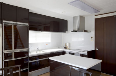 収納力たっぷりの広びろキッチン。奥様のお気に入りはIHクッキングヒーター。「まわりが熱くならないし、お掃除がラクなのがいいわ」と高く評価されています。