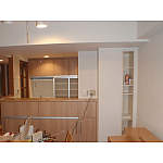 キッチンはリビングとの境をなくし、後部に同じシリーズの収納棚を設置。