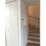 階段は、既存のものを利用し、新しく収納建具を設置。家族みんなが使い易い場所へ インターホンを移動しました。