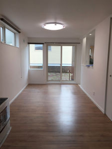 リフォーム後は、控え壁を取り払い、用途によって「リビングの空間」・「洋室」へ使いわけられるようにしました。簡易的に仕切られるように、ロールスクリーンを天井に取付ました。