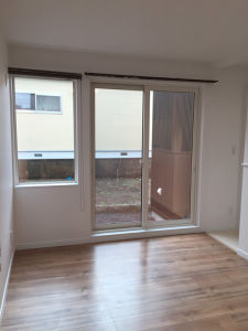 新しくなったリビングの窓。追買い易さと、断熱性能を兼ね、今回はFIX窓と引違い戸の組み合わせとなりました。