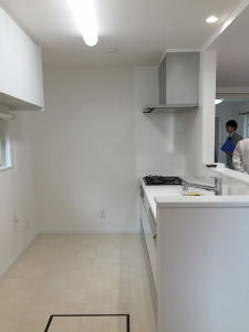 新しいキッチンは対面式に。いつでもお子様を見ながら料理を楽しめます。