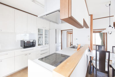 IHクッキングヒーターは料理が吹きこぼれると自動的に停止し、その後のお掃除もさっとふくだけ。お手入れがラクラクで奥様も大助かりだとか。