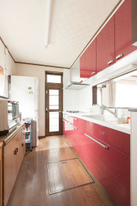 パナソニックのショウルームでリフォムスのキッチンを見て、PaPaPaシンクの便利さや収納量の多さにナットク! ご主人が価格面と機能性を考え合わせ、リフォムスに決められました。スモーキーレッドのカラーを選んだのもご主人。ご夫婦ともお気に入りです。