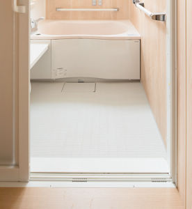 浴室の入口段差がほとんどなくなって、つまずく心配が減りました。それに、浴槽が大きくなったのがうれしいですね。ゆったり浸かれるけれど足が届くので、身体が安定します。浴槽のまたぎ込み高さが低いのも、出入りしやすくなって助かっています。