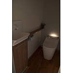 老後2人で過ごすので、トイレは自動で快適なものにしました。また、水周りだからこそあまりしない自然素材を使用し、空気が澄む空間に仕上げました。