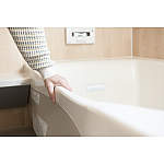 S様はいつも浴槽の縁を掴んで出入りされていますが、これがとても握りやすいそうです。“浴槽の形状も昔のような直線ではなく、人が使いやすいようにいろいろ工夫されていると感じます。お風呂も進化しているんですね(笑)”。