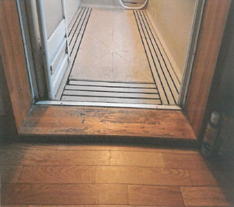 床は足を置くとヒヤッとする冷たさ。掃除もしづらい構造でした。