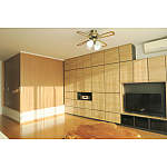 キュビオスはTVだけでなく、ステレオ置き場やCDの枚数等も考慮してプランニング。全面キュビオスでも圧迫感なくスッキリ。