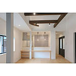 既存の梁を活かして解放感のある明るいダイニング