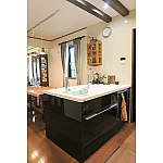 ご夫婦とお孫さんが楽しく会話をしながら、のびのびと料理ができる明るいキッチンの実現を目指し、同時に作業が可能なよう調理スペースにも配慮したⅡ型の対面キッチンをご提案。洗濯機を移動してできたキッチン奥は、パントリー兼ちょっとした奥様の作業スペースにし、階段下も開口し収納としてスペースを有効活用しました。お母さまが作られた想い出の彫刻作品を大切にされていたので、その作品が活きるシックな配色にもこだわりました。補強上残るキッチン上の梁は、シンク側キッチンと同色の木目シートを貼ることで、逆にお部屋が引き締まるアクセントに。照明もダウンライトやパネルミナで、スマートながらも明るく眩しくないLEDで家具との調和をはかりました。