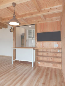 リビングダイニングの壁の一面に、北欧風カントリー調の無垢羽目板の杉板を施工しました。木のぬくもりが感じられる、上品で落ち着いた雰囲気になりました。