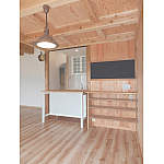 リビングダイニングと和室から、開放的で広々とした、優しい雰囲気のリビングダイニングに変更しました。リビングダイニングの正面の壁には、薄型液晶テレビを設置しました。