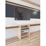 テレビコンセントやアンテナ端子は、テレビの真裏に設置しています。テレビとレコーダーの配線は、壁の中を通すことで、正面から一切見えず、すっきり仕上がっています。