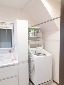 洗濯で使用する洗剤は、洗濯機上の棚へスッキリ。