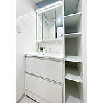 三面鏡を採用し、さらにサイドにトールキャビネットを設置。