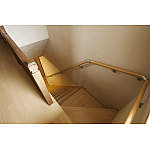 階段には連続手すりを設置。以前は狭くて急な階段でしたが、勾配をゆるくして、ステップも踏みやすい幅に変更しました。